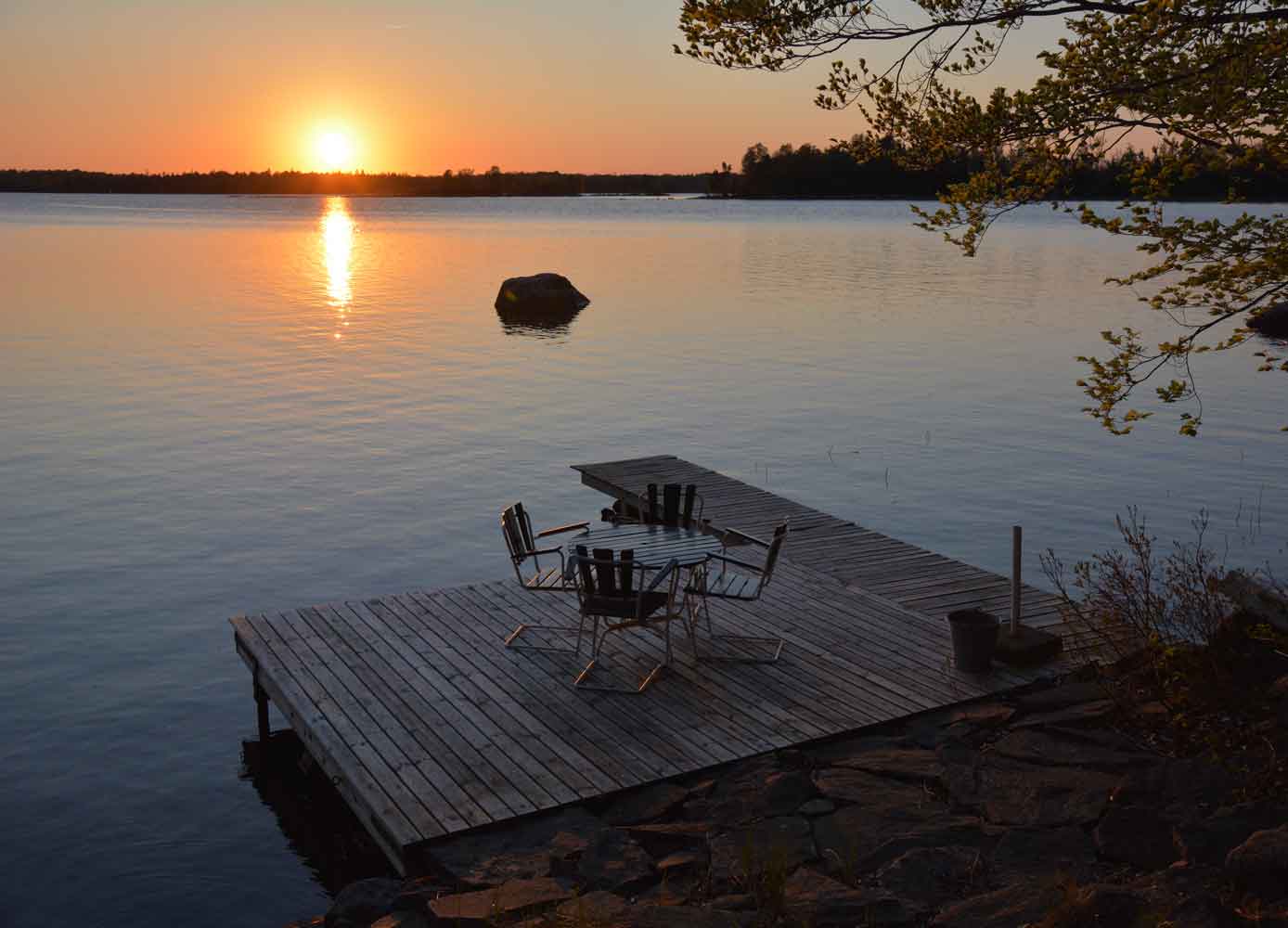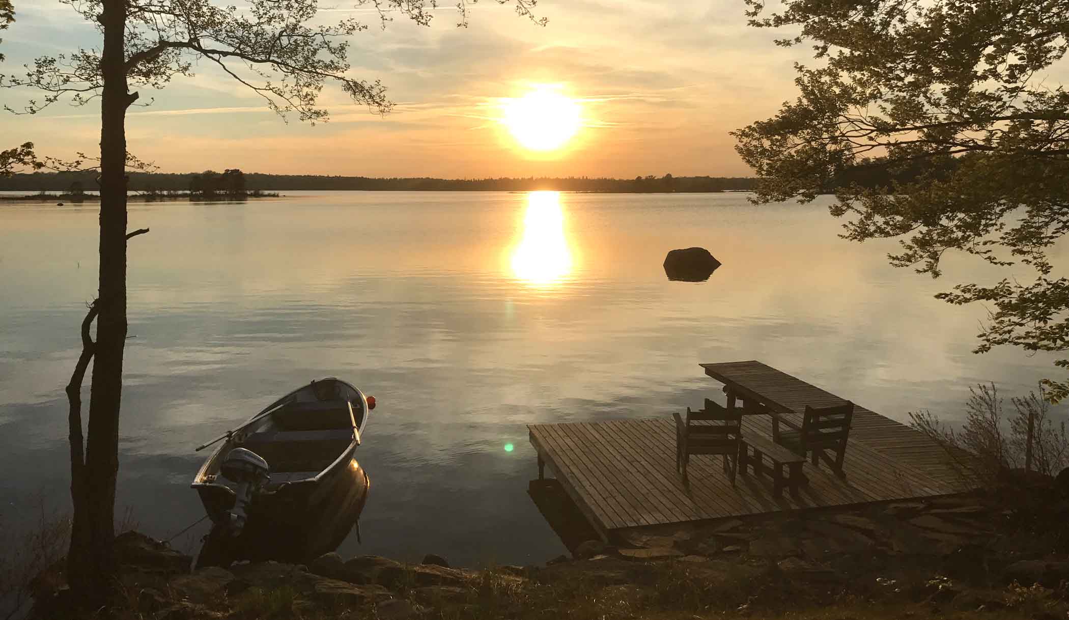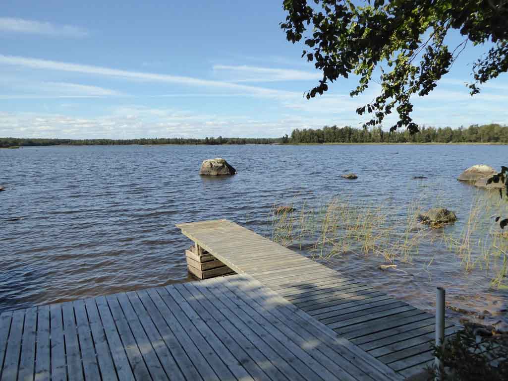 Vid sjön Endast 40 meter från huset ligger er privata brygga, med plats för bad och båtliv. Badplatsen har sandbotten och passar för ett uppfriskande morgondopp. Här kan du också avnjuta spektakulära solnedgångar över Åsnen – en upplevelse i sig.