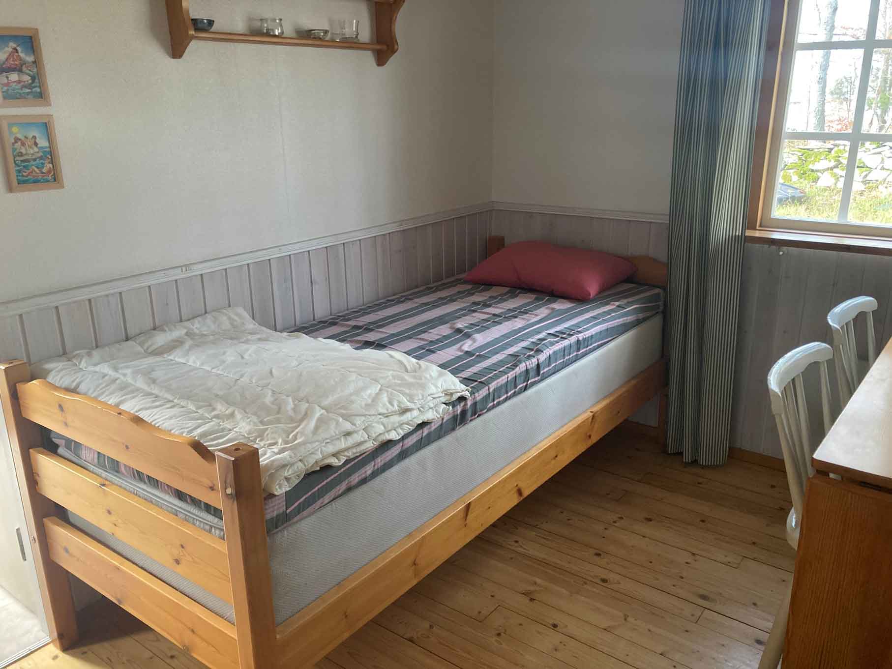 Drömläge vid sjön Åsnen – Perfekt för sportfiskare och naturälskare. Hus med 1 sovrum med 2 dubbelsängar, ett vardagsrum / kök, 4 (+1) bäddar. Dusch/toalett i annexet. 40 m².